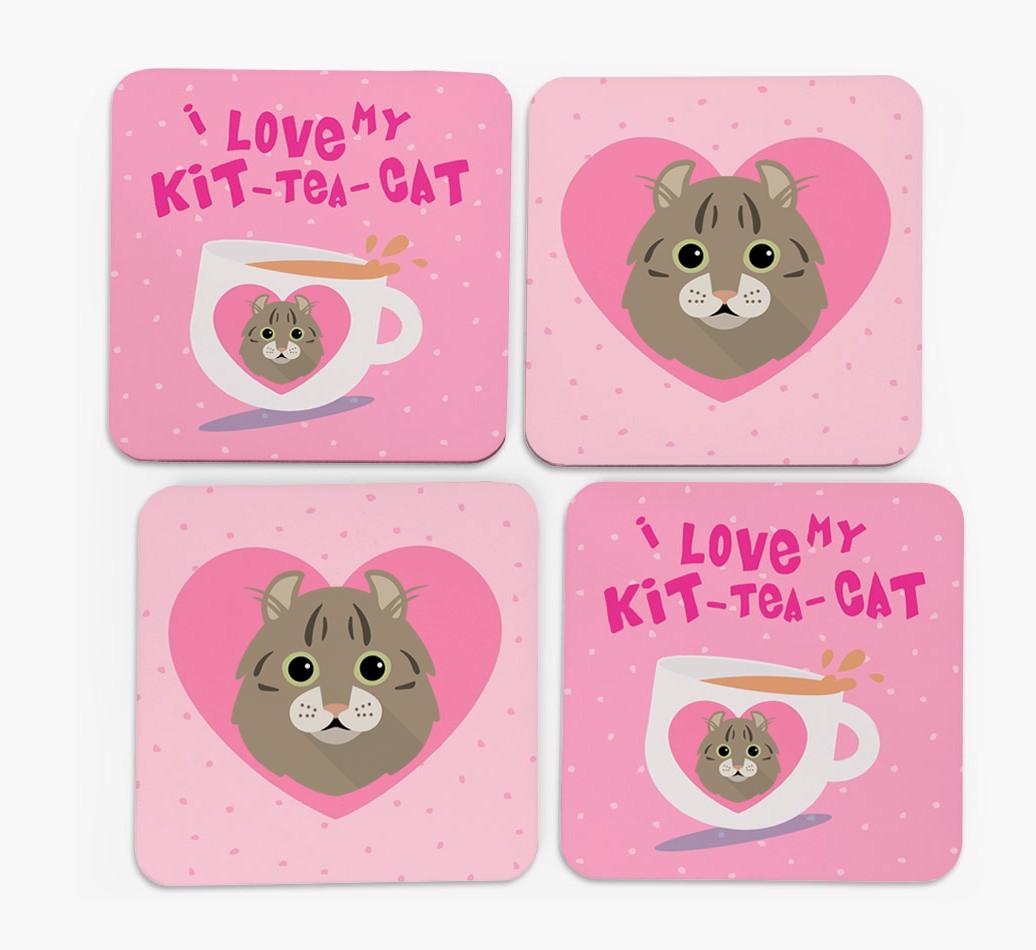 'I Love My Kit-Tea-Cat' - Personalized American Curl Coasters (Set of 4)
