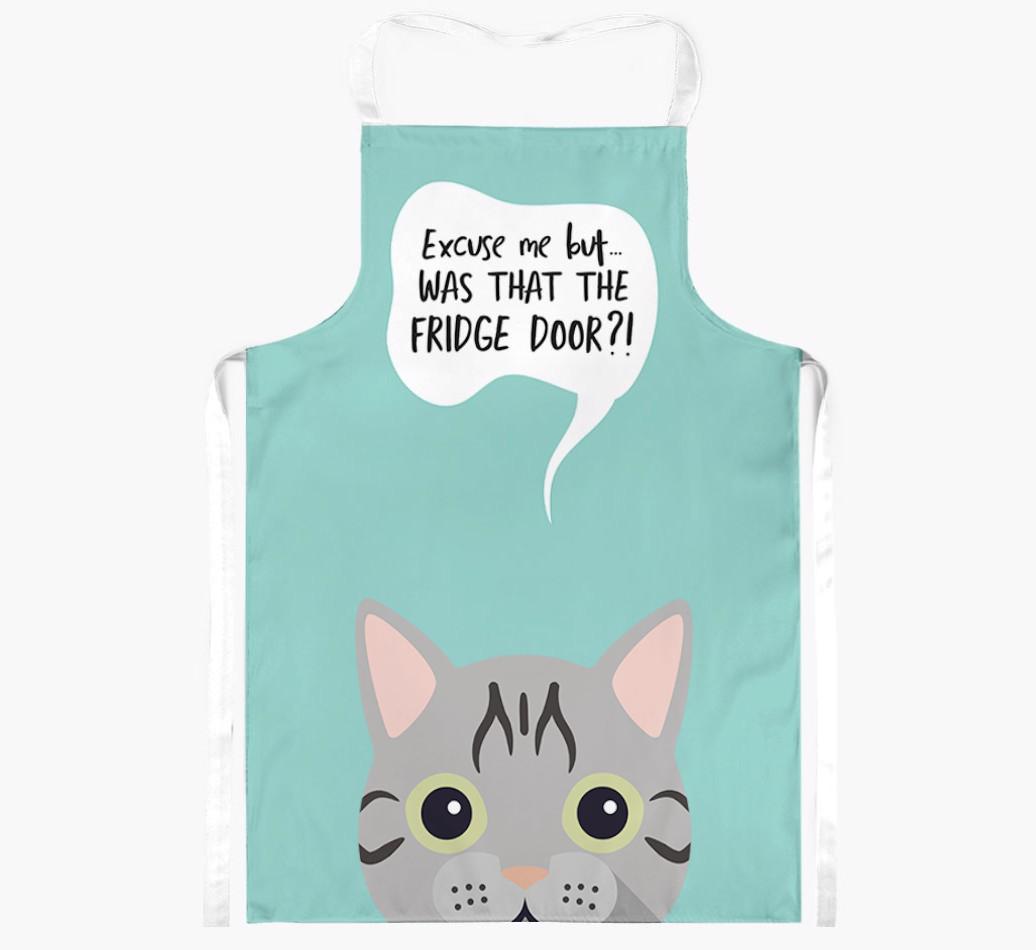 Featuring your cat's cheeky icon and available in five eye-catching colors, this apron is a must-have for parents of greedy kitties!