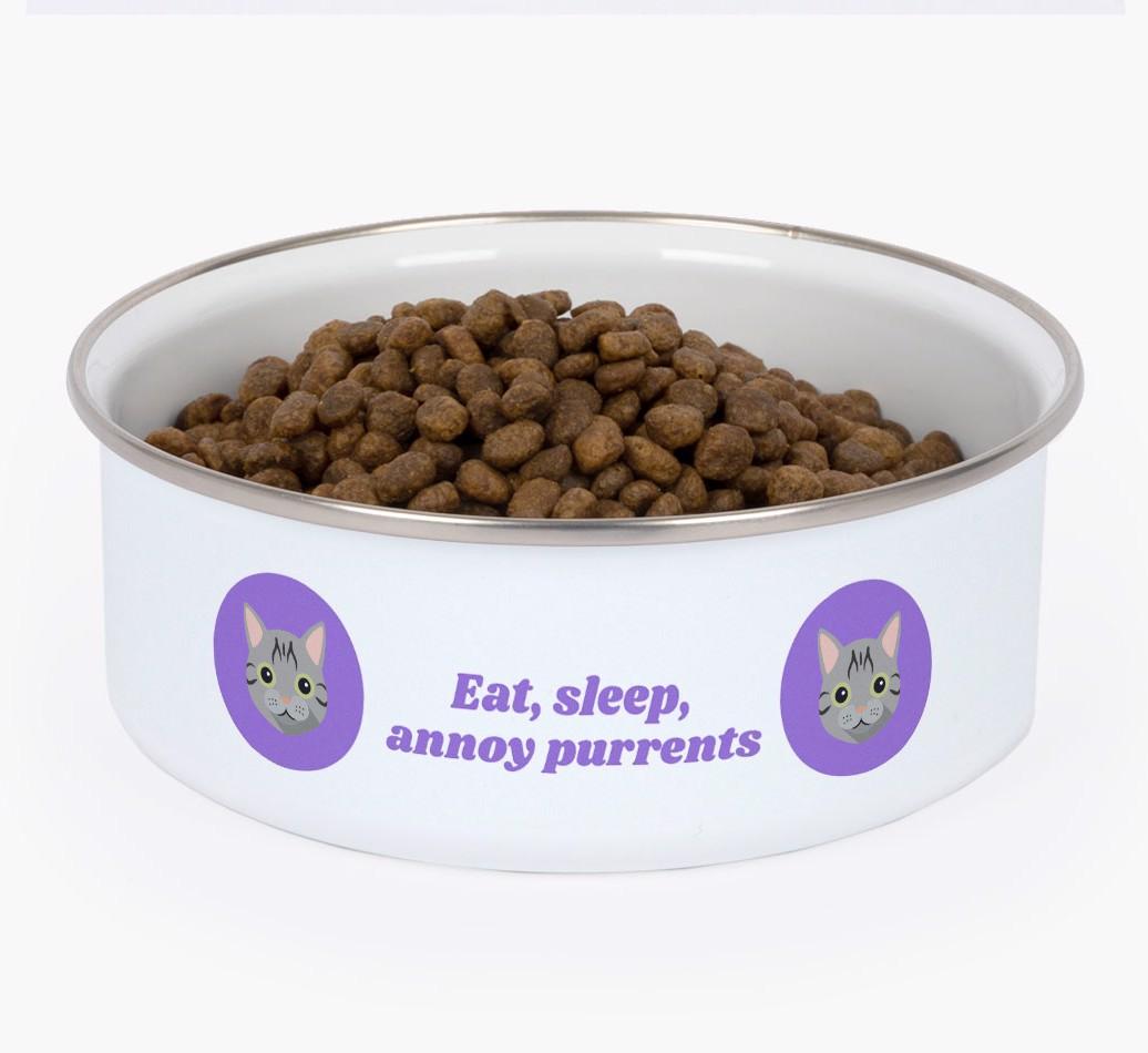 Eat, Sleep, Annoy Purrents: Personalized American Shorthair Enamel Cat Bowl