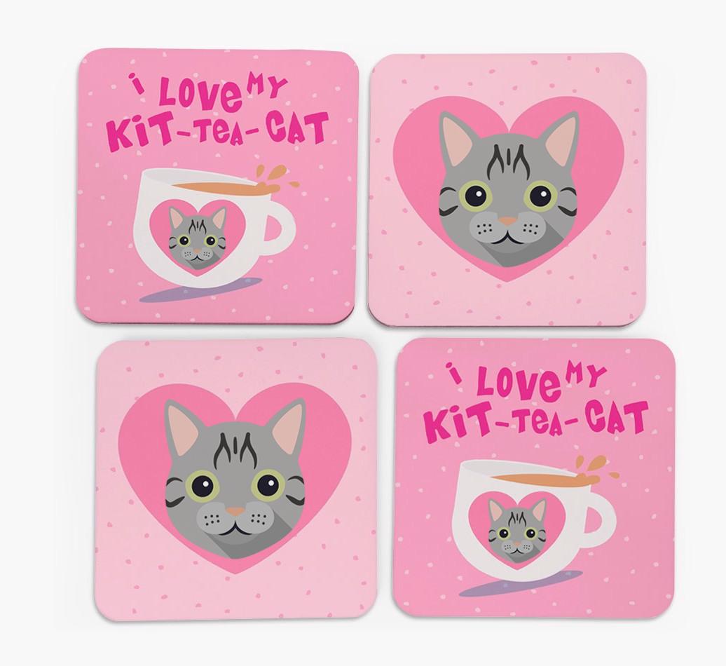 'I Love My Kit-Tea-Cat' - Personalized American Shorthair Coasters (Set of 4)