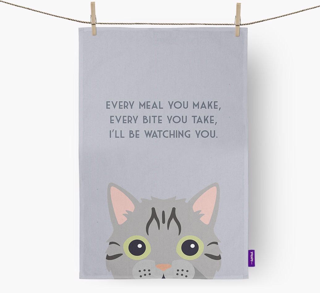 Printed with the words: ‘Every meal you make, every bite you take, I’ll be watching you’, this dish towel is purrfect for letting your cheeky American Wirehair know you’re onto them!
