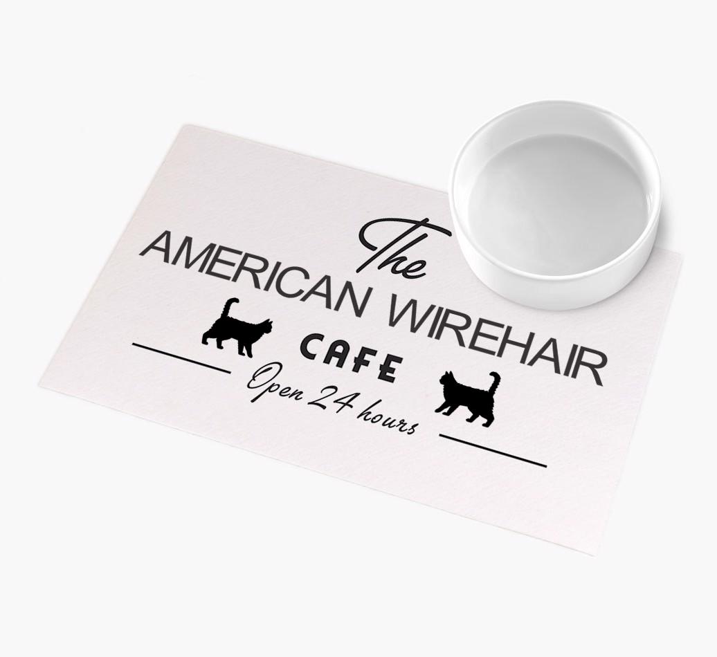 'The American Wirehair Cafe' - Personalized American Wirehair Feeding Mat