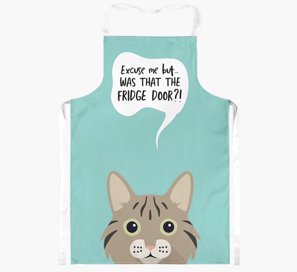 Featuring your cat's cheeky icon and available in five eye-catching colors, this apron is a must-have for parents of greedy kitties!