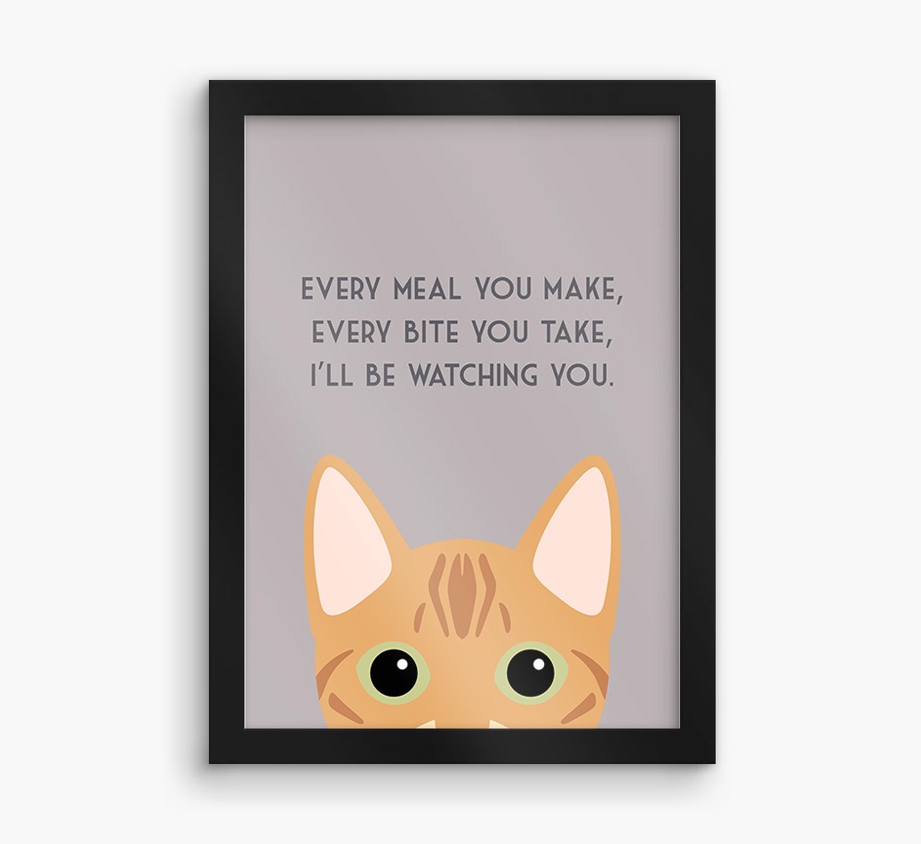 Printed with the words, ‘Every meal you make, every bite you take, I’ll be watching you’ and complete with our cute Cat peeking from the bottom of the design, this artwork will look great on display in the kitchen or anywhere Arabian Mau likes to watch you eat!