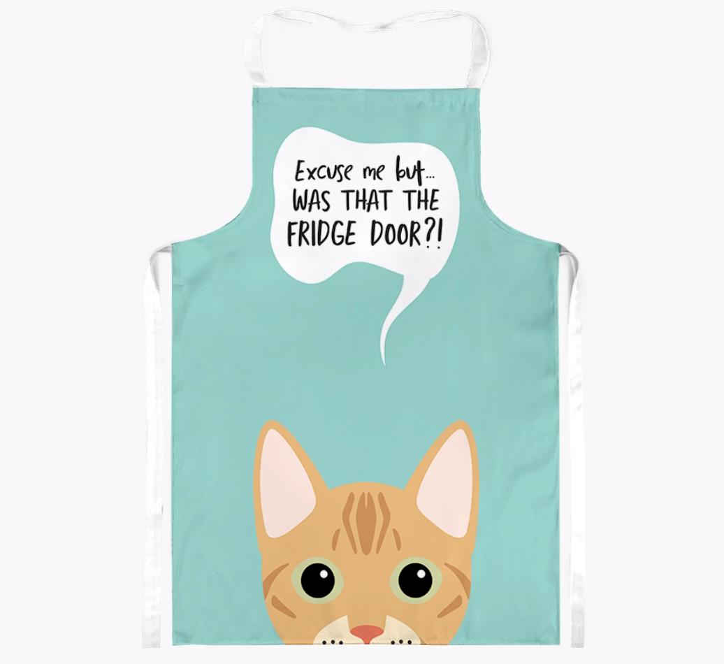 Featuring your cat's cheeky icon and available in five eye-catching colors, this apron is a must-have for parents of greedy kitties!