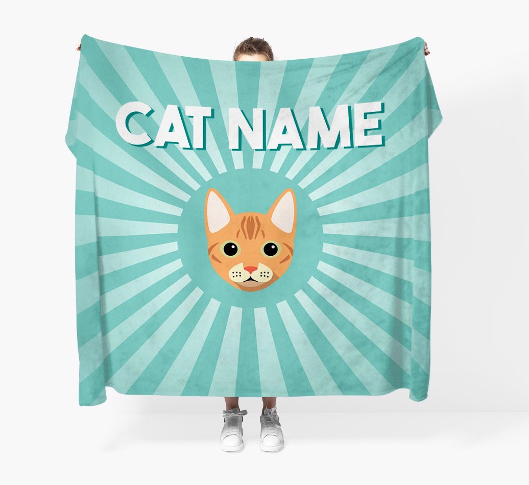 With your Cat’s icon beaming at the center of this stunning sunbeam design, this blanket is personalized with Arabian Mau’s name to make it even more special.