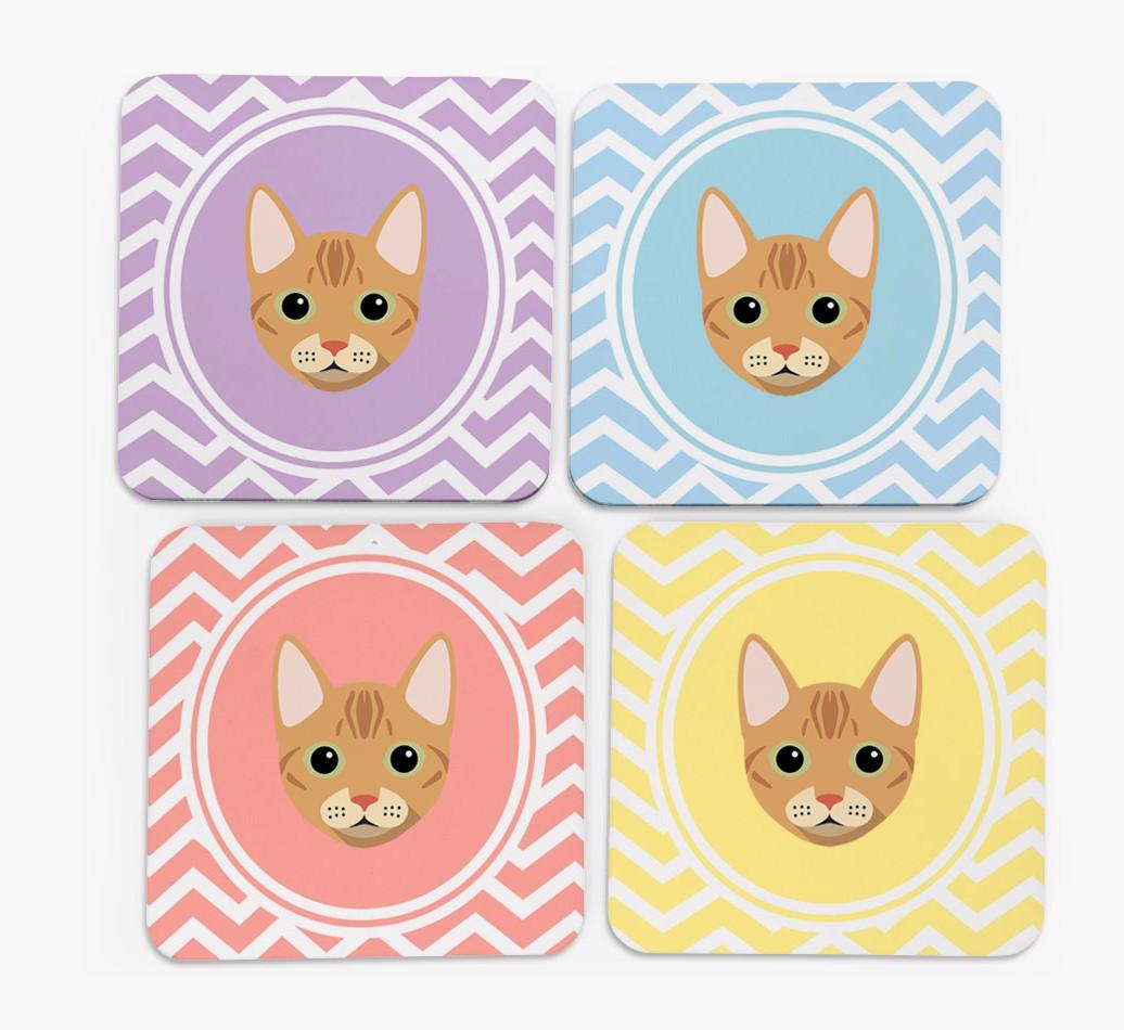 'Zig Zag' - Personalized Arabian Mau Coasters (Set of 4)