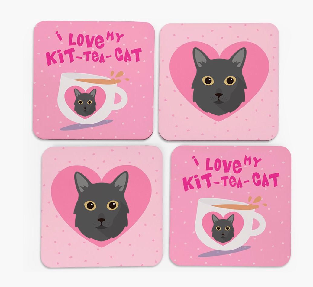 'I Love My Kit-Tea-Cat' - Personalized Asian Longhair Coasters (Set of 4)