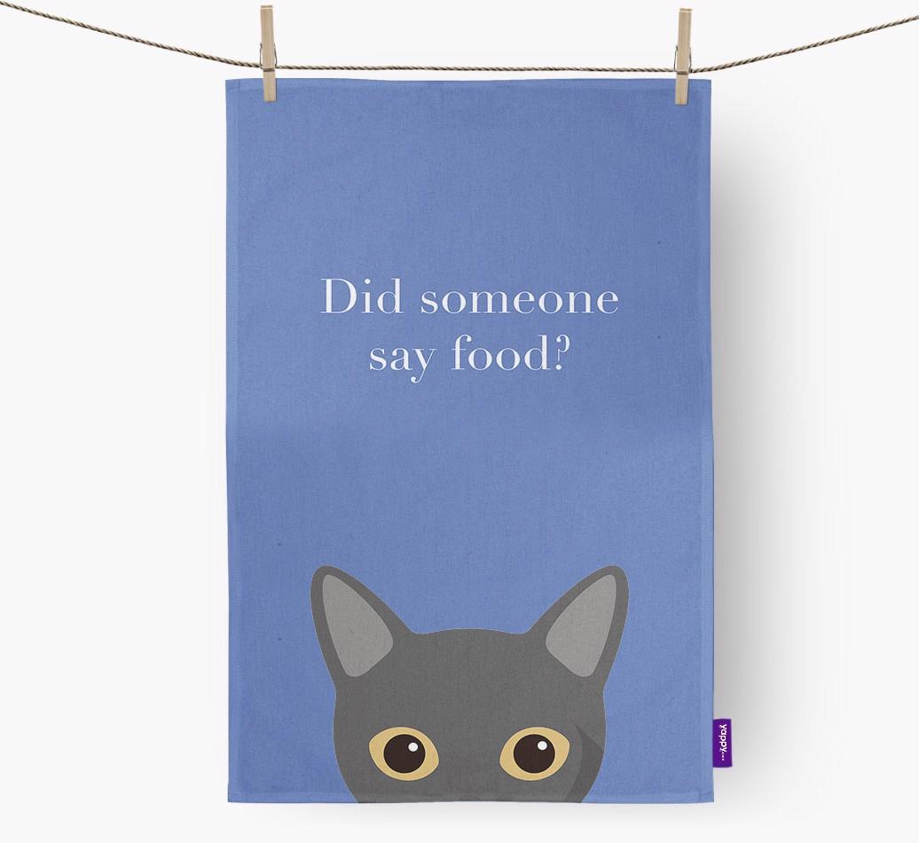 Printed with Asian Shorthair’s favorite question, ‘Did someone day food?’, this dish towel knows exactly what’s on your Asian Shorthair’s mind.