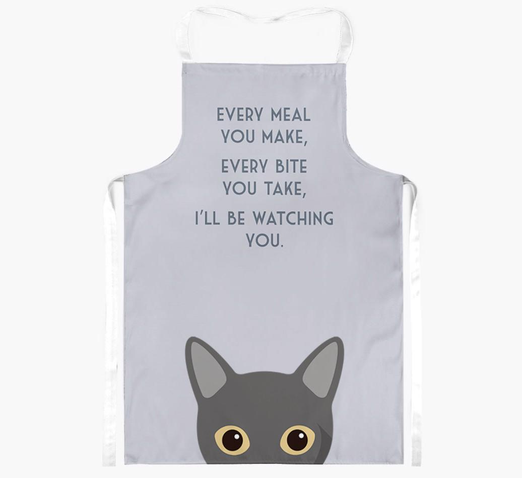 This apron is a must-have for those who share a kitchen with a food-loving feline!