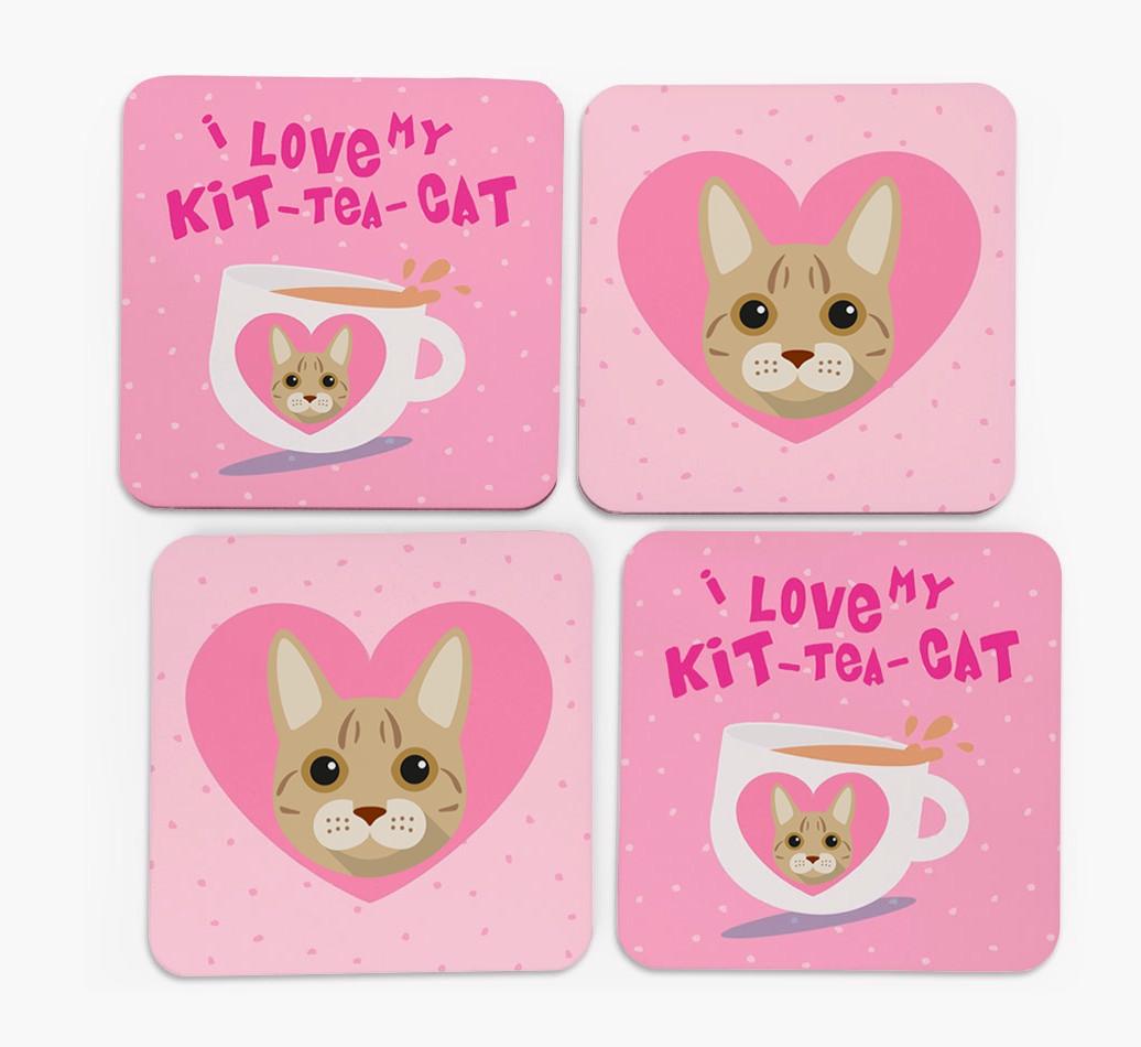 'I Love My Kit-Tea-Cat' - Personalized Australian Mist Coasters (Set of 4)