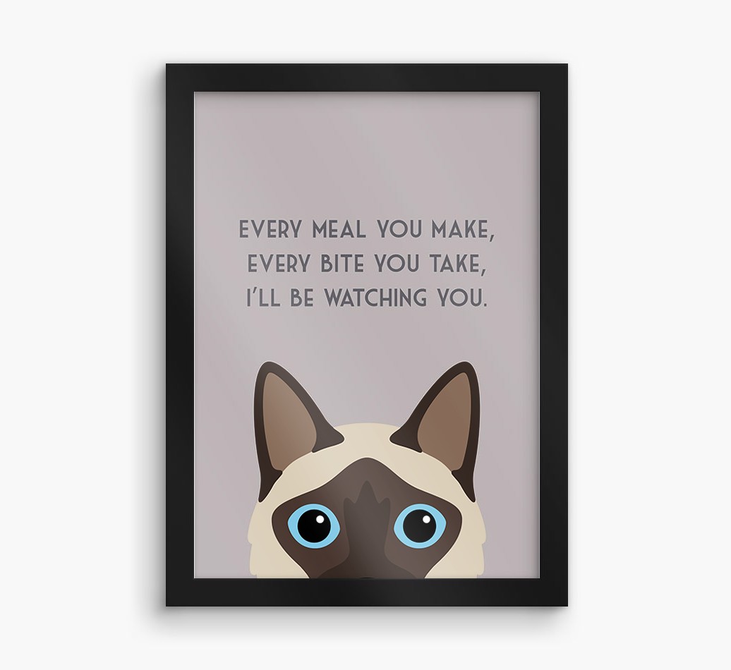Printed with the words, ‘Every meal you make, every bite you take, I’ll be watching you’ and complete with our cute Balinese peeking from the bottom of the design, this artwork will look great on display in the kitchen or anywhere Balinese likes to watch you eat!
