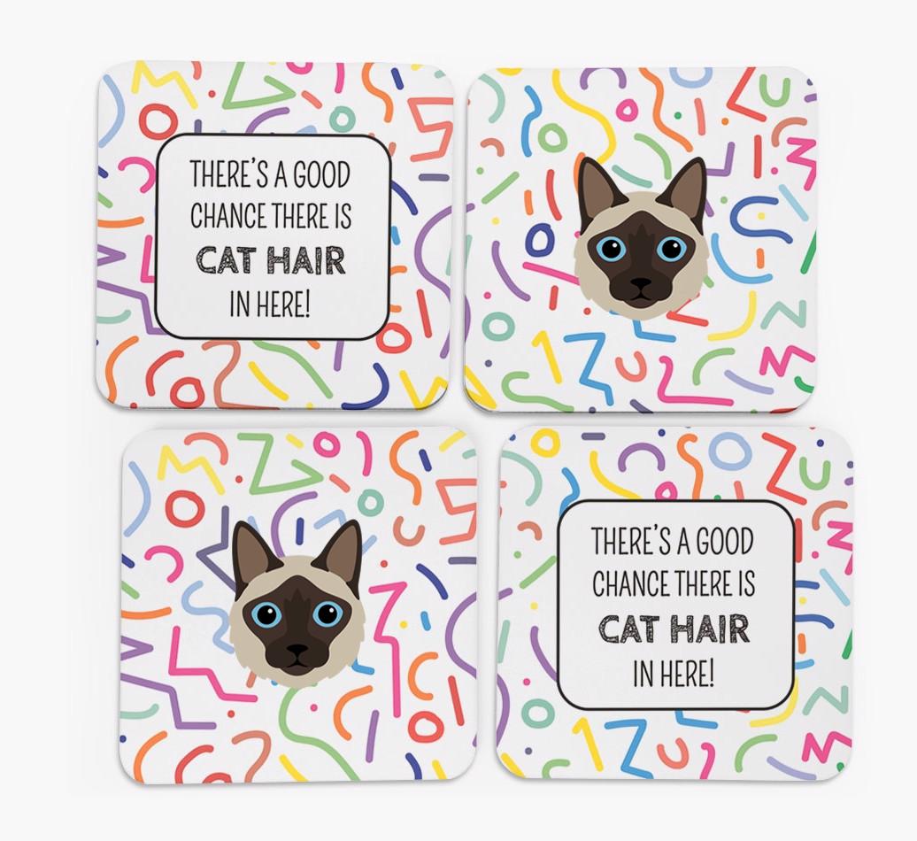 With two coasters featuring cute Balinese icons, the other two provide a warning to friends and family: ‘There’s a good chance there’s cat hair in here!’