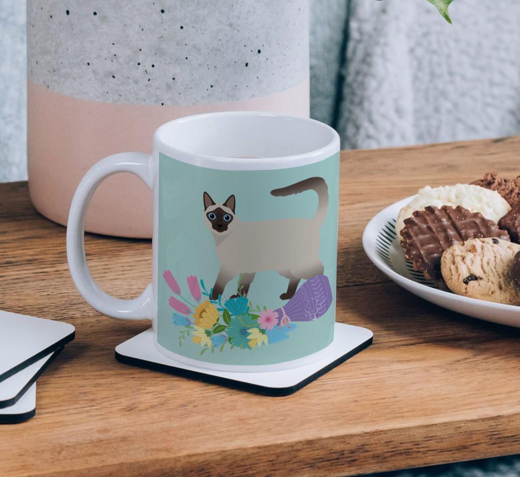 This mug comes in three pastel colors and a floral design, furrfect for keeping a watchful eye over your Balinese!