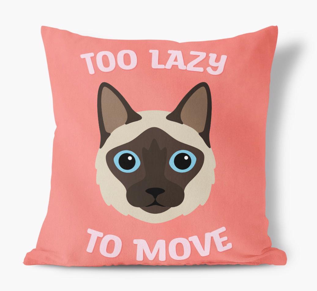 Featuring your Balinese's icon, the words 'Too Lazy To Move' and available in five bold colors, this pillow will add a sprinkle of Balinese's pawsonality to any living area.