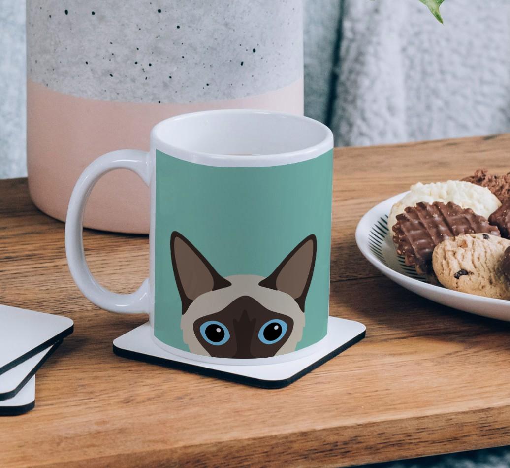 Enjoy the perfect coffee break with a mug that stars your feline friend! Featuring a Yappy.com exclusive Balinese peeking icon, this pawgeous mug will look at home in any cat lover's kitchen and we're pretty sure Balinese Modern will be a fan too.