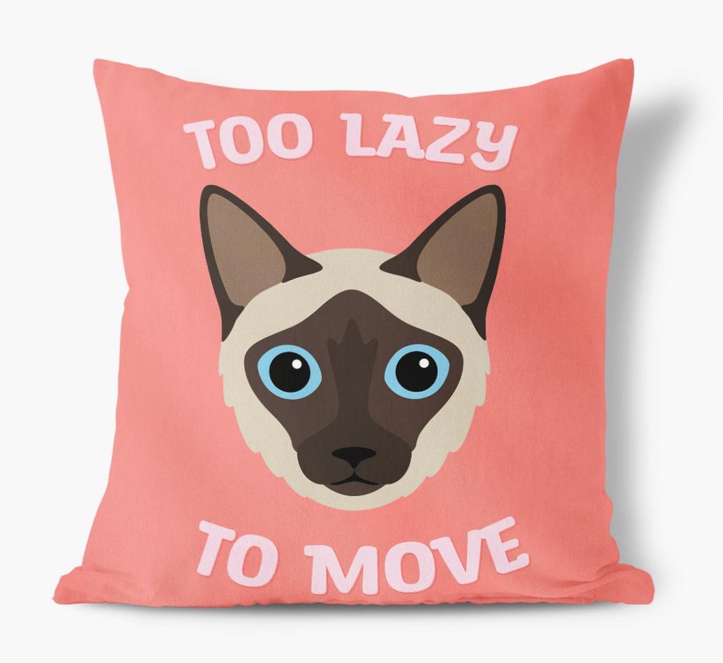 Featuring your Balinese's icon, the words 'Too Lazy To Move' and available in five bold colors, this pillow will add a sprinkle of Balinese Modern's pawsonality to any living area.