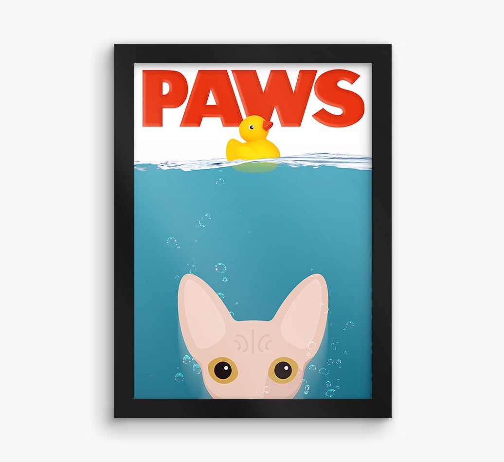 Featuring Bambino as the lead in the blockbuster film ‘Paws’, this vibrant art piece is a cool way to show off your superstar Cat.