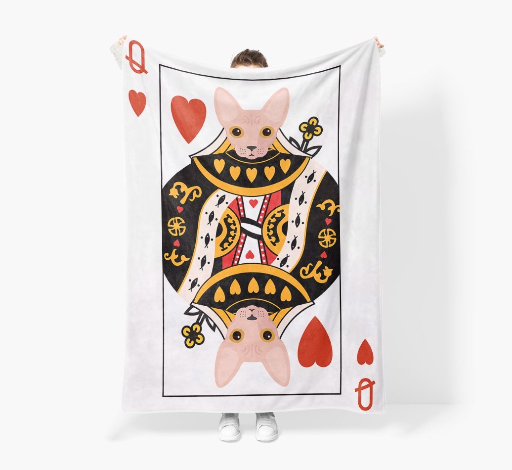 Queen of Hearts: Personalized Cat Blanket: Premium Sherpa Fleece