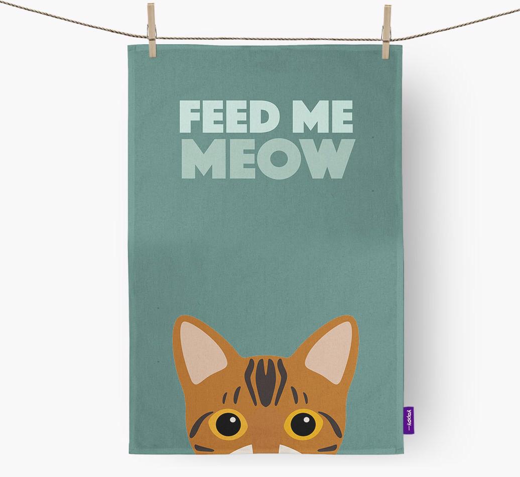 This gorgeous dish towel is sure to delight every Bengal pawrent, especially as it stars their kitty's favorite phrase, 'feed me meow'!