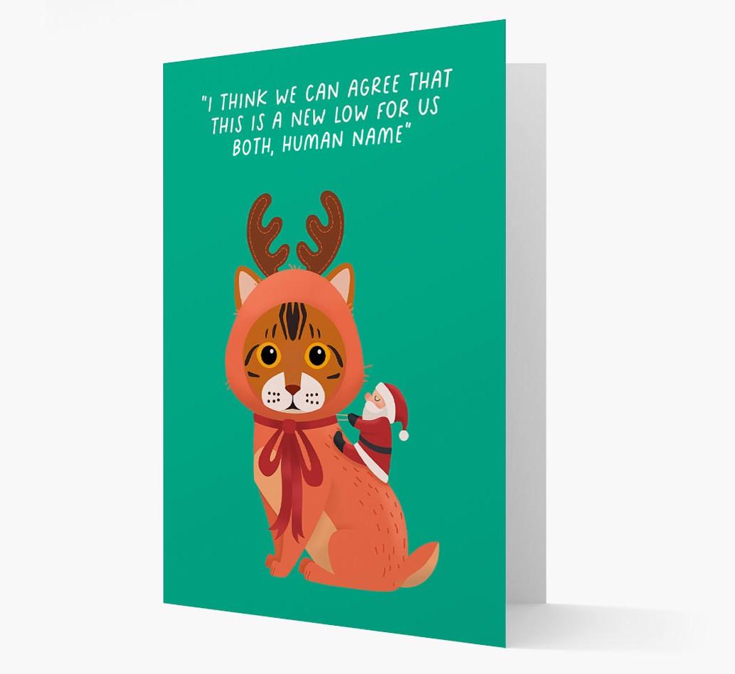 Starring Bengal dressed in a cute reindeer costume (complete with Santa Paws riding on the back), this card also features with your chosen human's name to make it supaw personalized and special for the recipient.