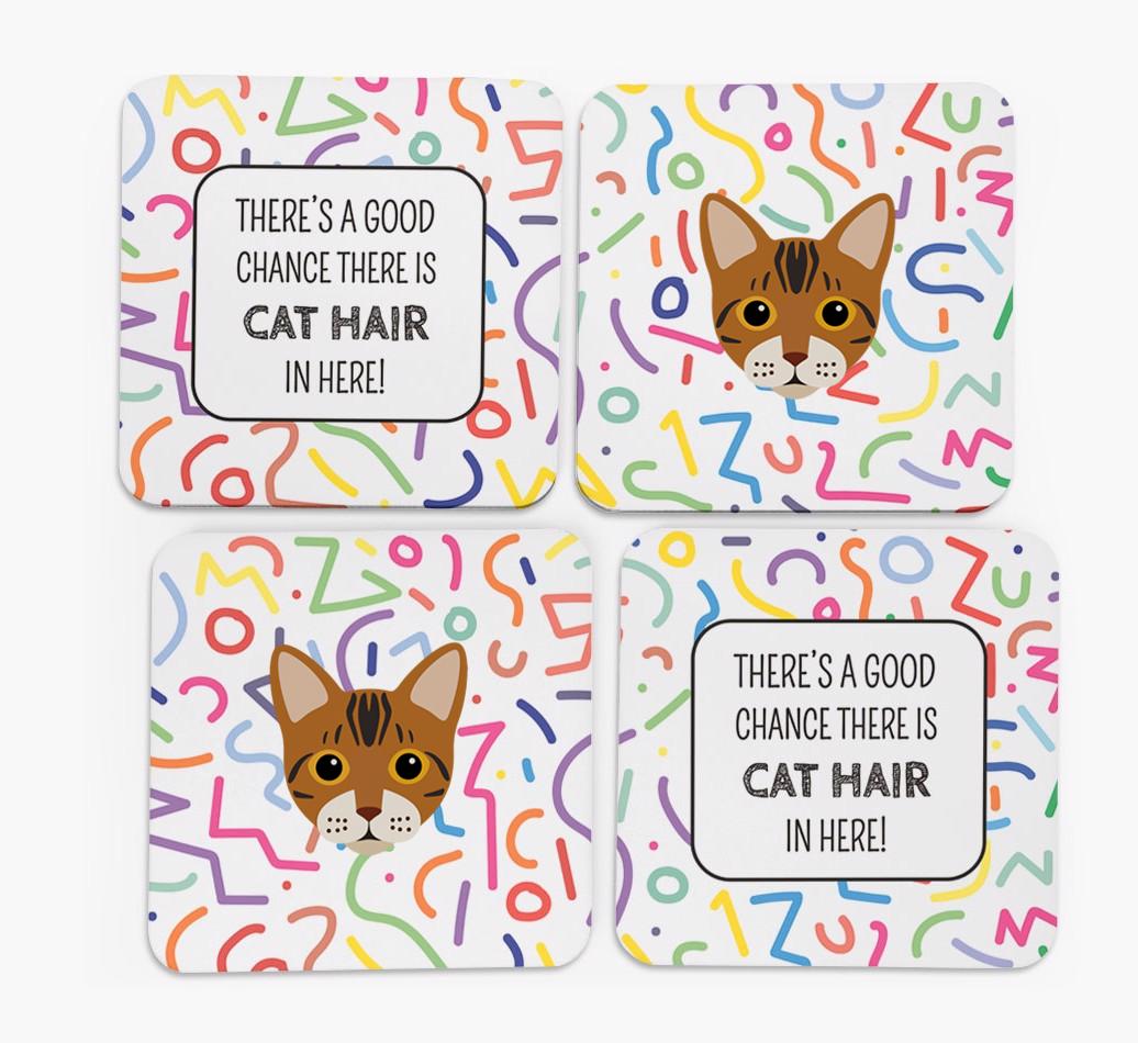 With two coasters featuring cute Bengal icons, the other two provide a warning to friends and family: ‘There’s a good chance there’s cat hair in here!’