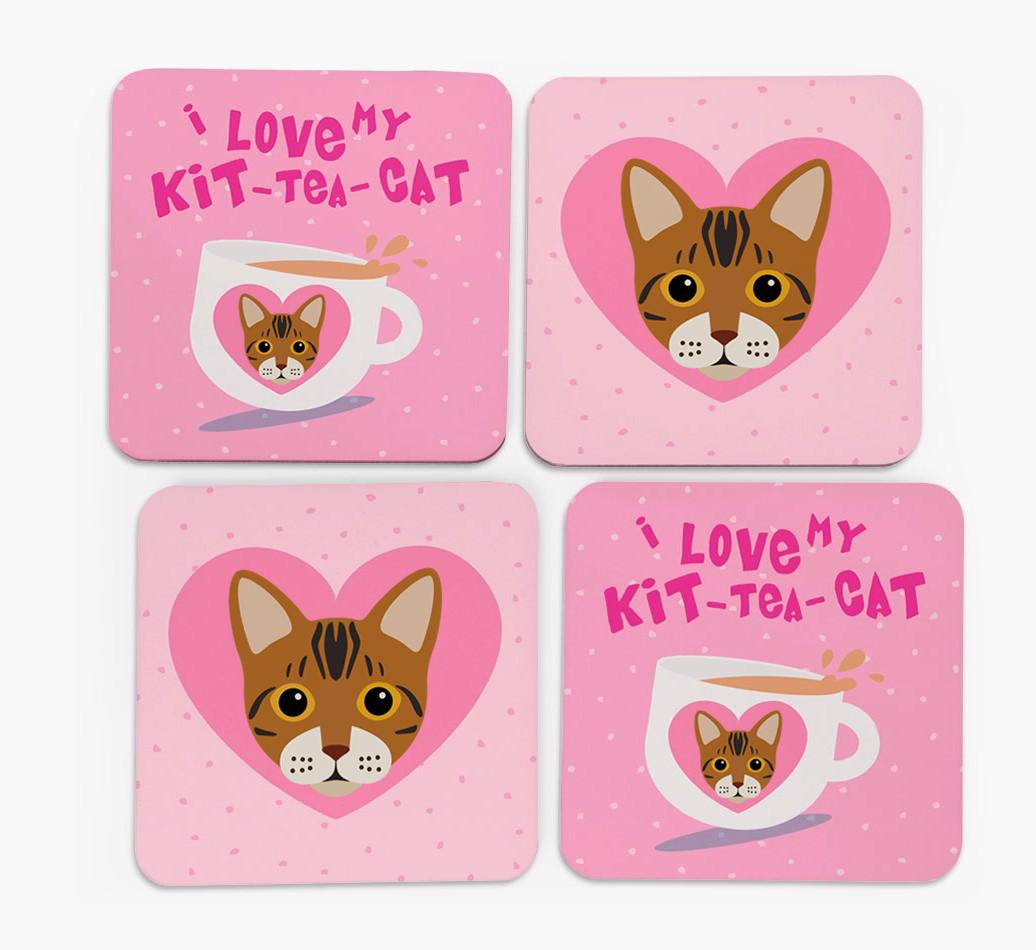 'I Love My Kit-Tea-Cat' - Personalized Bengal Coasters (Set of 4)