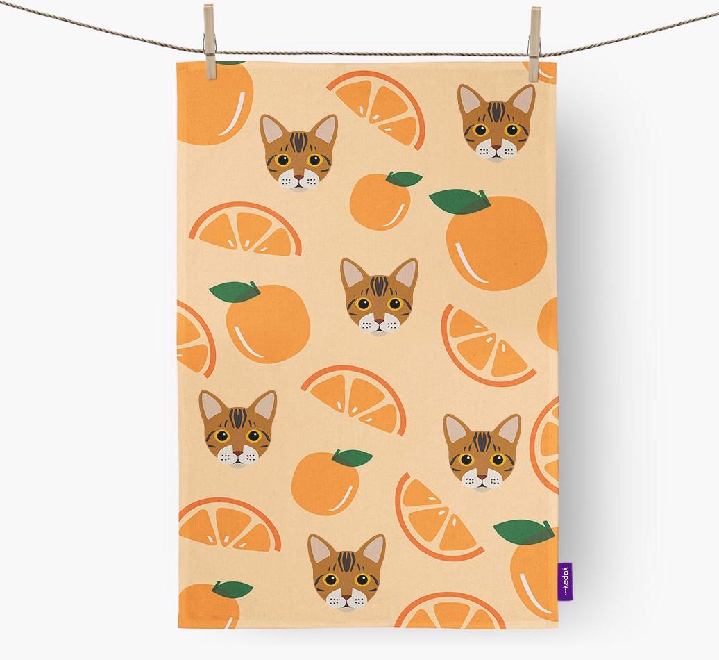 • Cute Bengal dish towel adds feline flair to the kitchen