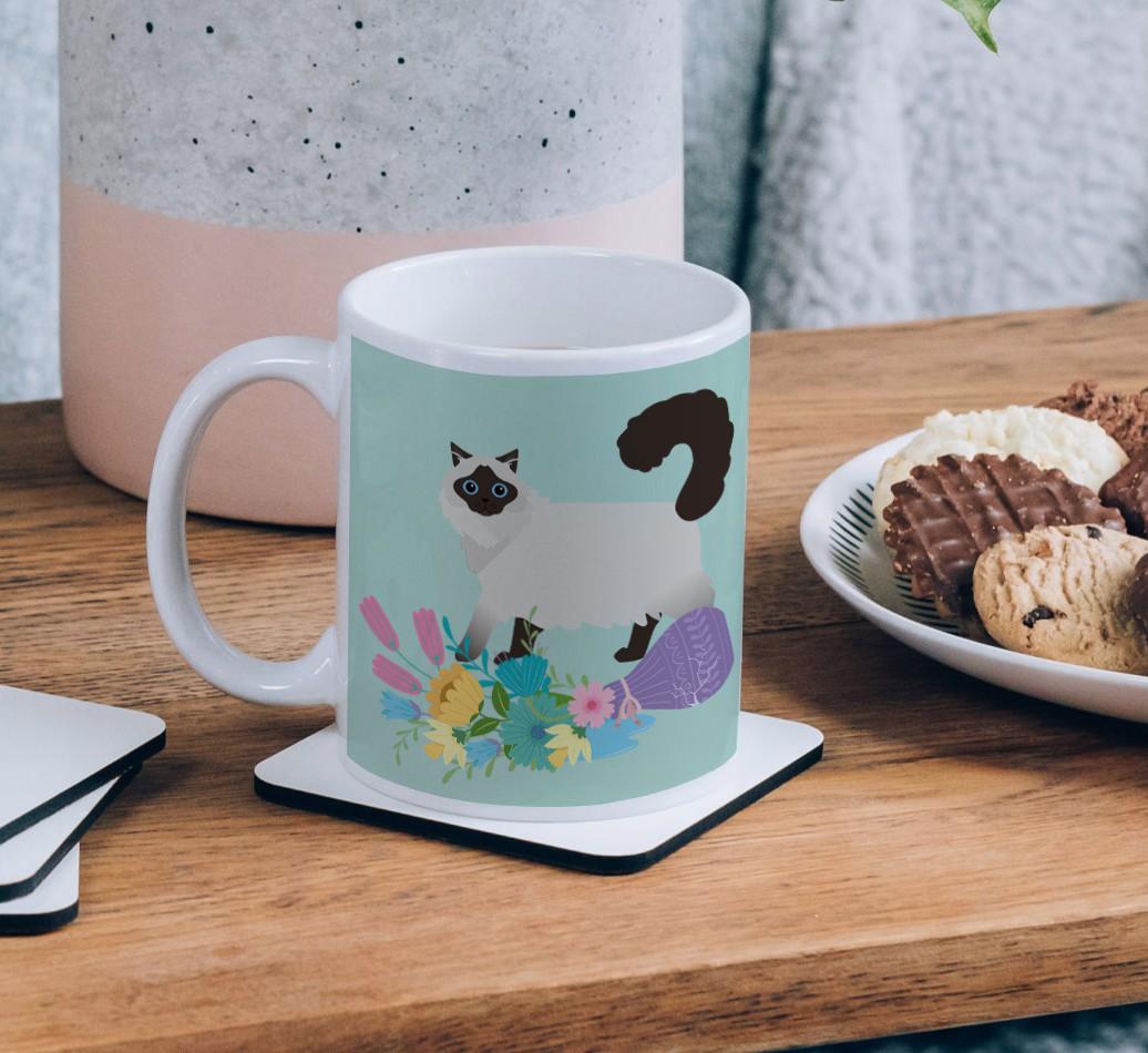 This mug comes in three pastel colors and a floral design, furrfect for keeping a watchful eye over your Birman!