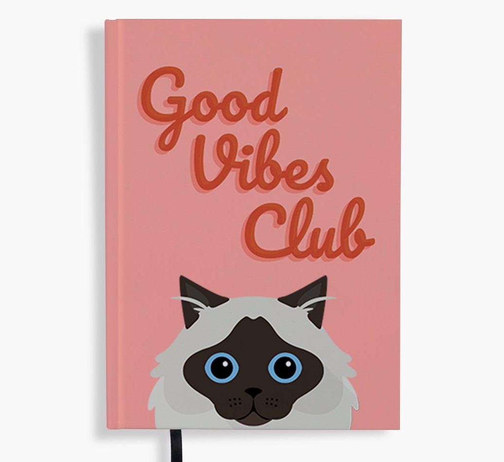 Are you and Birman all about the good vibes? Customized with your kitty's cheeky icon, this sleek and stylish notebook is the purrfect way to show off the purrresident member of the Good Vibes Club!