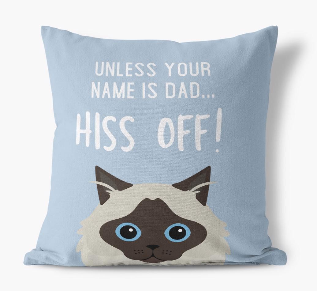 Personalized with your Birman's icon and available in four rustic colours, this pillow is purrfect for Birman dads who have an unbreakable bond with Birman this father's day!