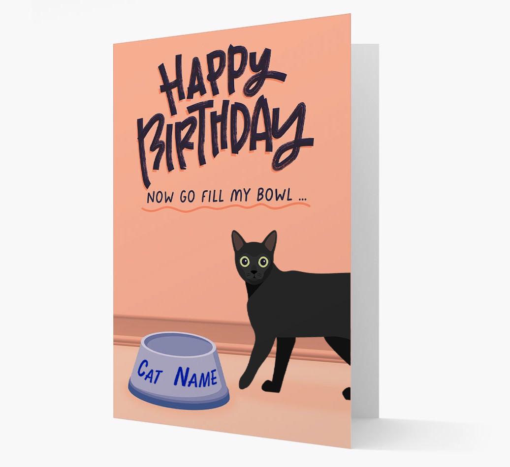 Personalized with your Bombay’s icon and name and available in four colors, this card is purrfect for Bombay’s who love to wish you happy birthday but equally love their feline food!