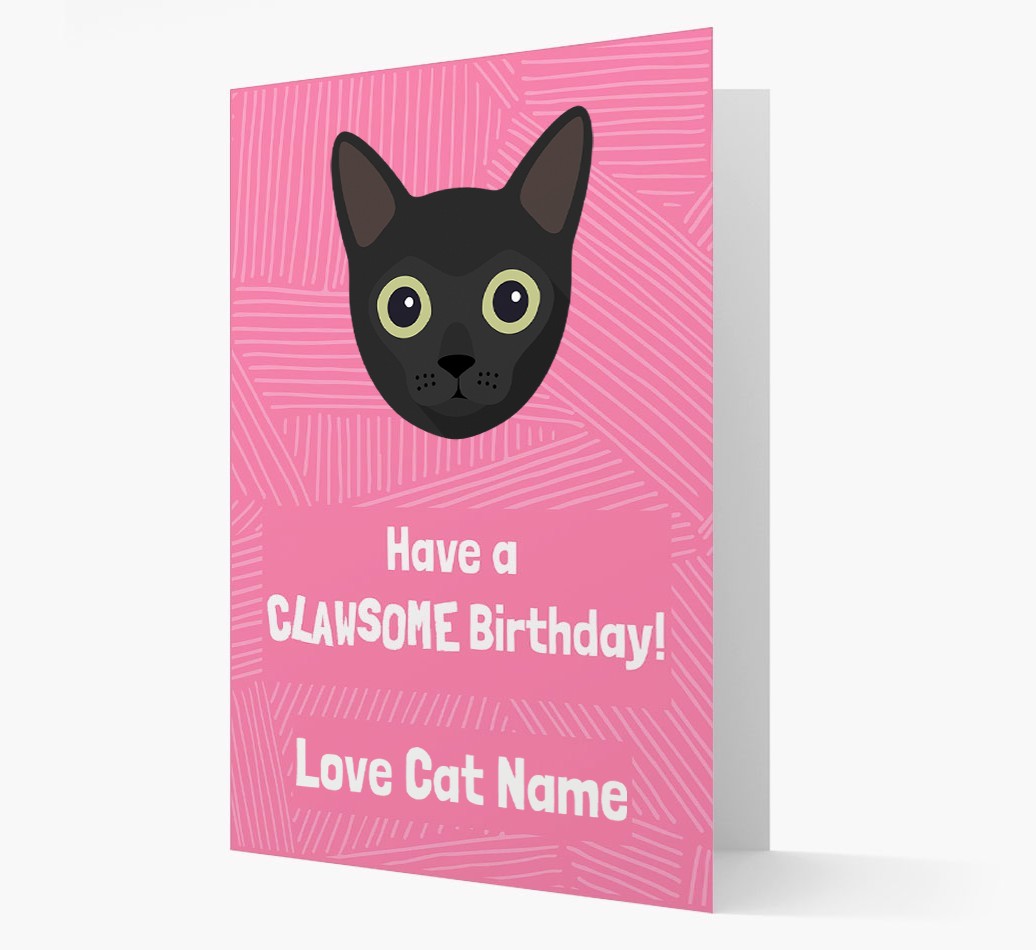 Featuring Bombay in furbulous party attire, they’re ready to celebrate the recipient being another year older and even more clawsome.
