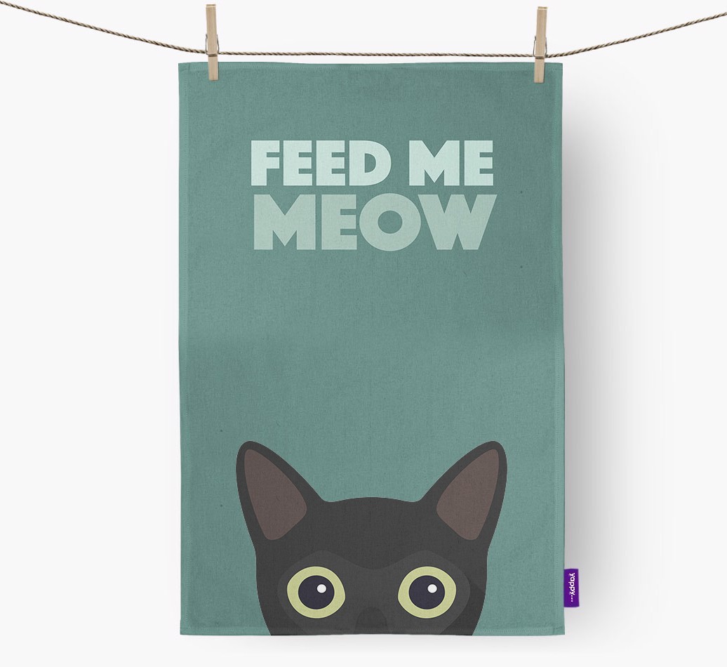 This gorgeous dish towel is sure to delight every Bombay pawrent, especially as it stars their kitty's favorite phrase, 'feed me meow'!