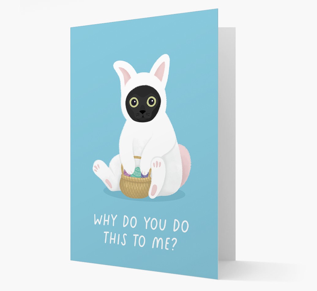 Well...now you don't have to since this card does it for you! Although Bombay might ask 'Why do you do this to me?', we guarantee they won't be companining after they see how egg-ceptional this card is! This card features your Bombay's personalized icon and is available in 3 pastel colors.