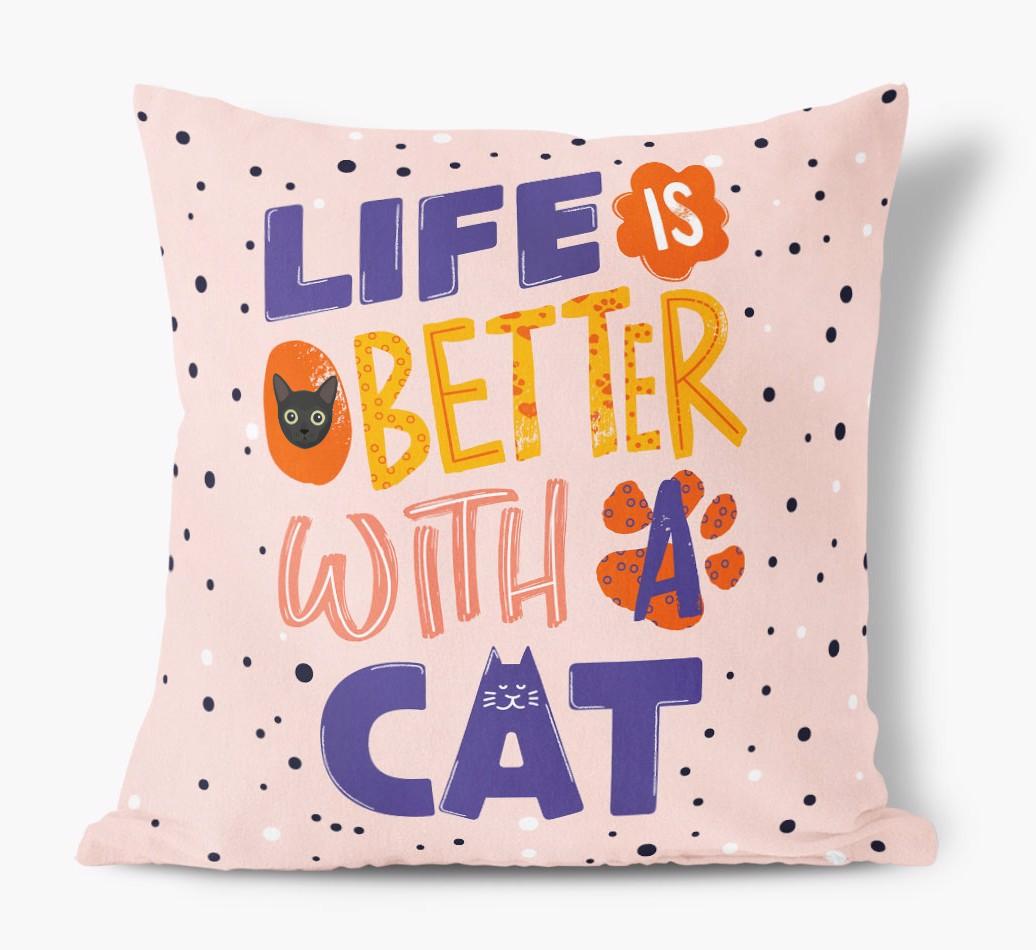 Featuring your Bombay's icon and the words 'Life is Better With a Cat', this pillow will add a sprinkle of Bombay's pawsonality to any living area.