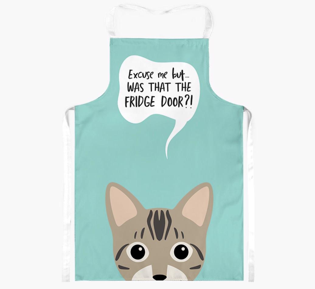 Featuring your cat's cheeky icon and available in five eye-catching colors, this apron is a must-have for parents of greedy kitties!