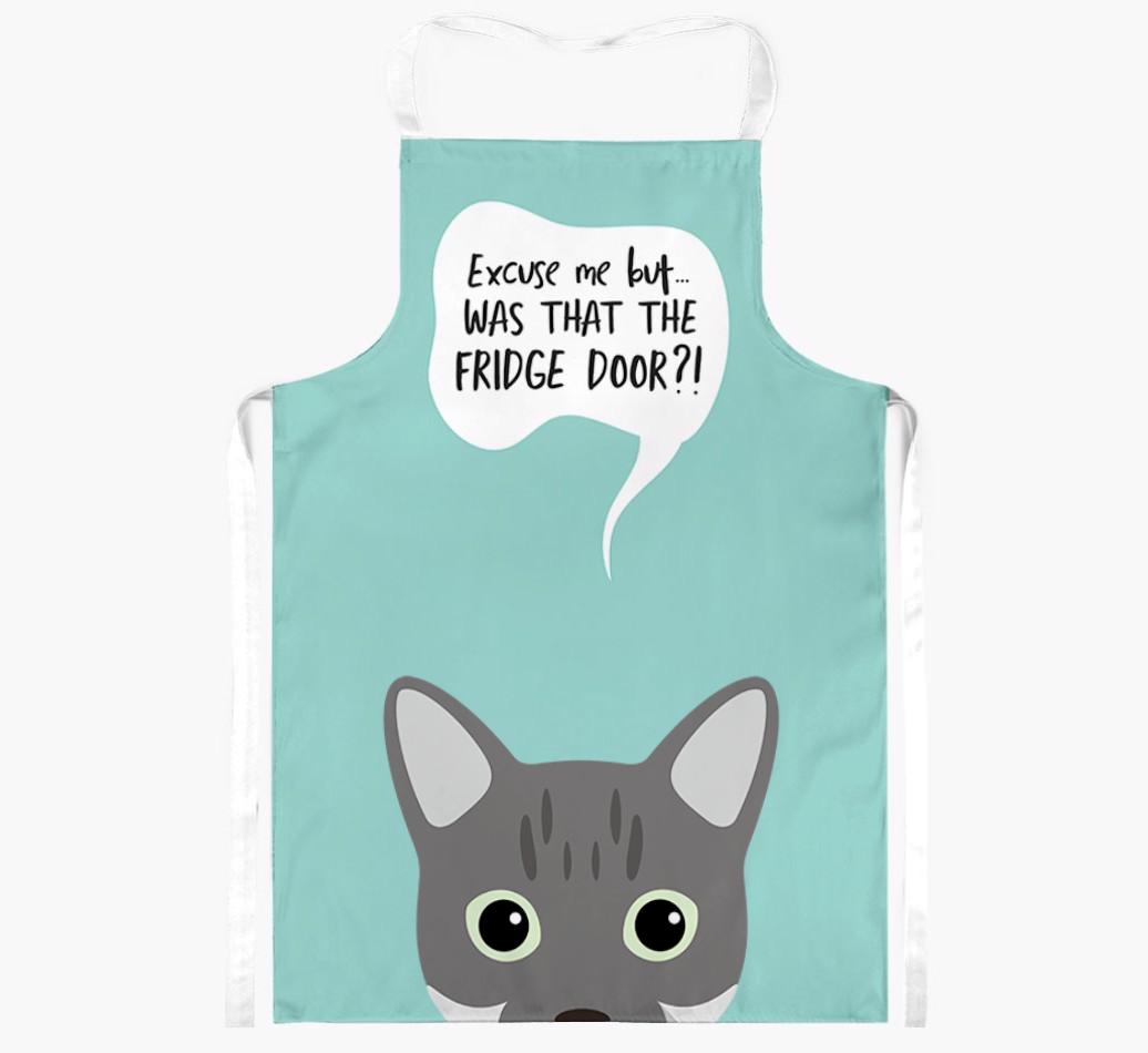 Featuring your cat's cheeky icon and available in five eye-catching colors, this apron is a must-have for parents of greedy kitties!