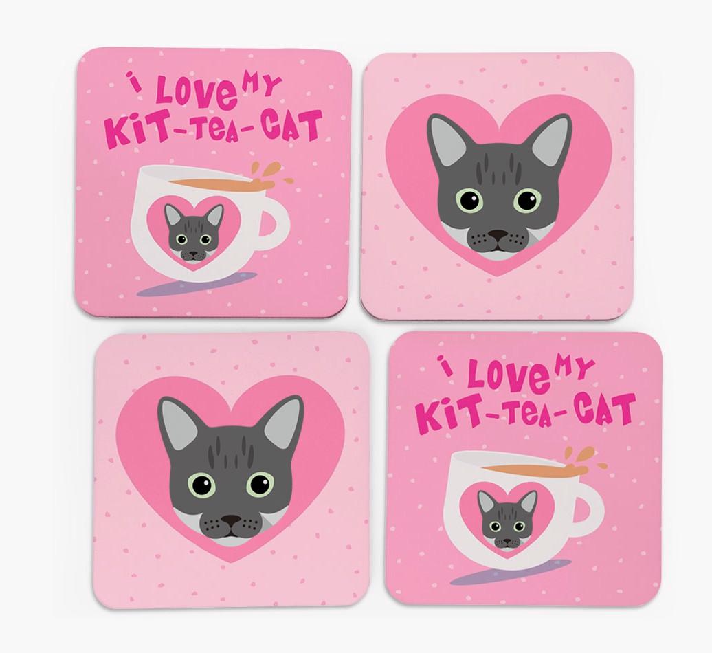 'I Love My Kit-Tea-Cat' - Personalized Brazilian Shorthair Coasters (Set of 4)