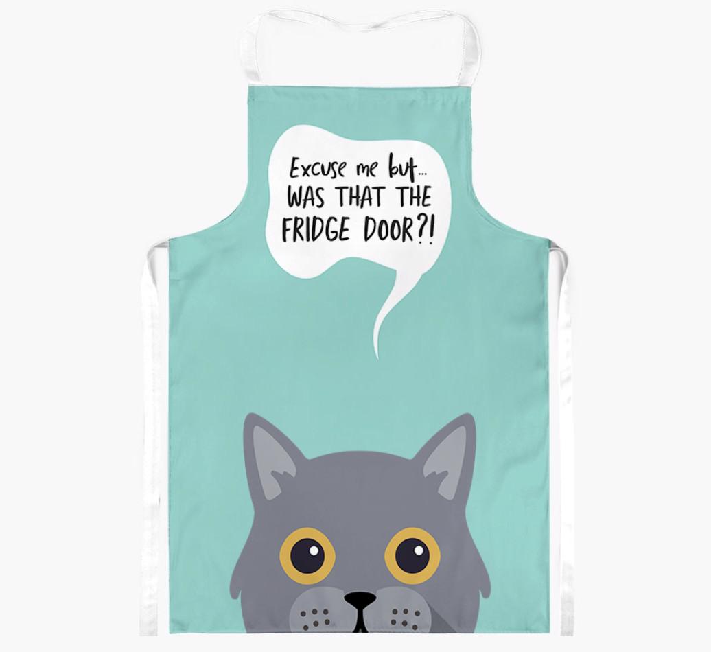 Featuring your cat's cheeky icon and available in five eye-catching colors, this apron is a must-have for parents of greedy kitties!