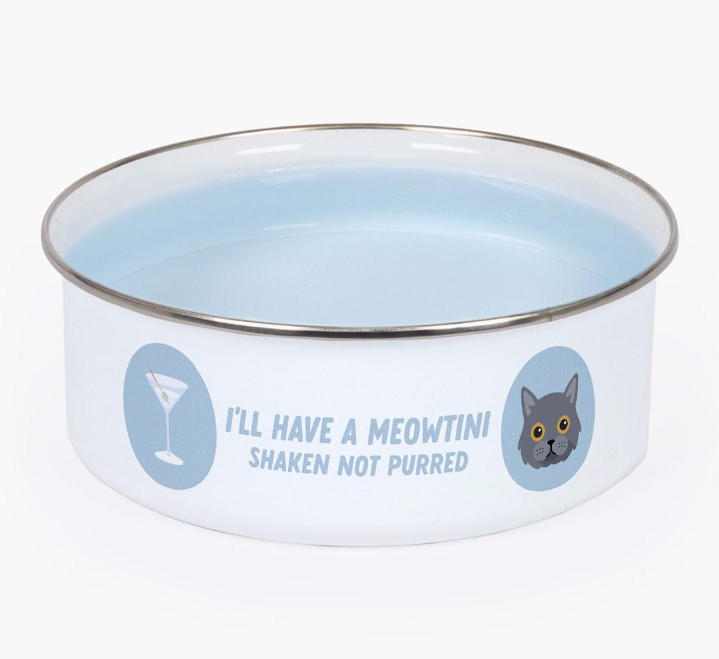 Meowtini: Personalized British Longhair Enamel Cat Bowl
