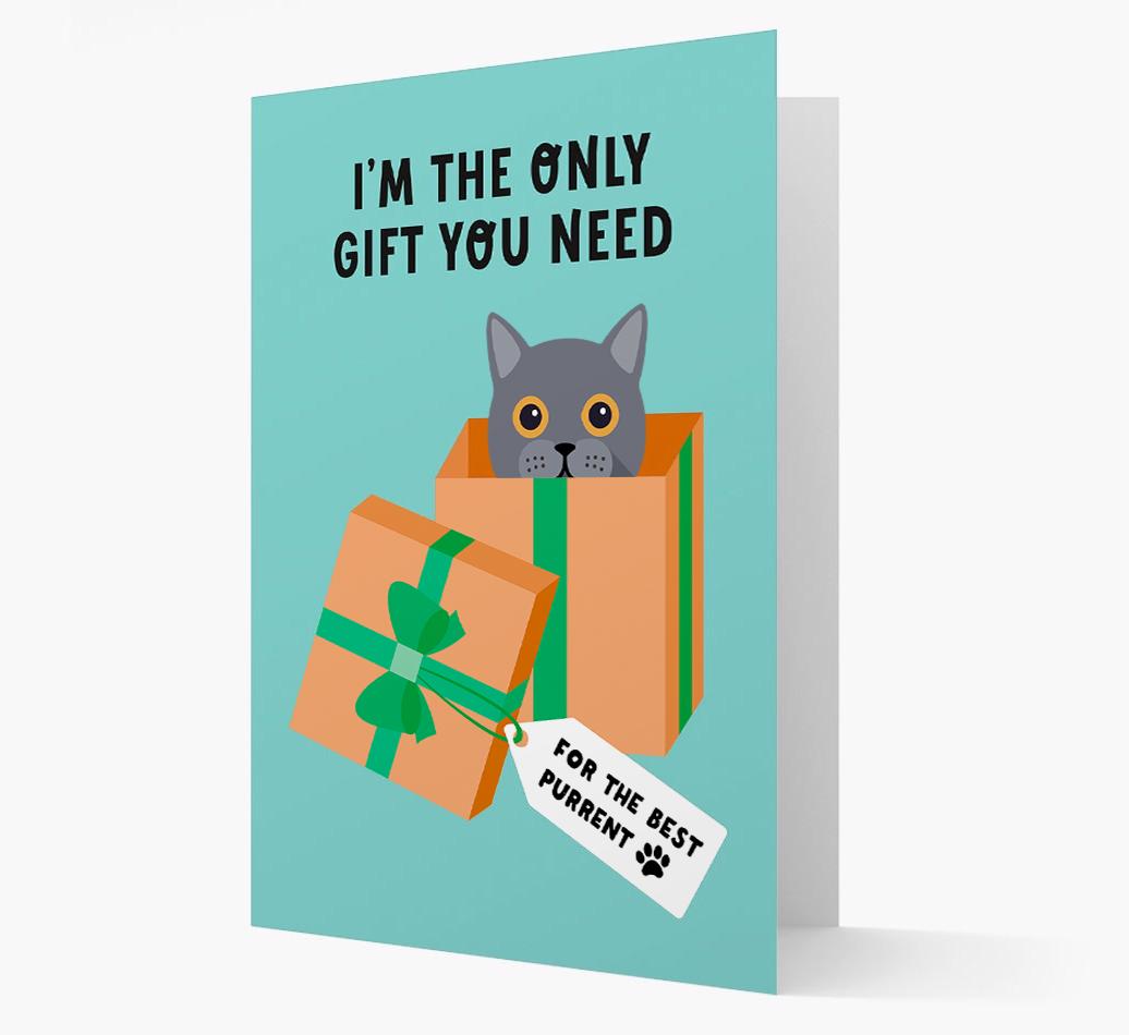 Available in four pastel colors and with British Shorthair's personalized icon wrapped in a box, this card is furfect for hoomans whose love language isn't giving presents.