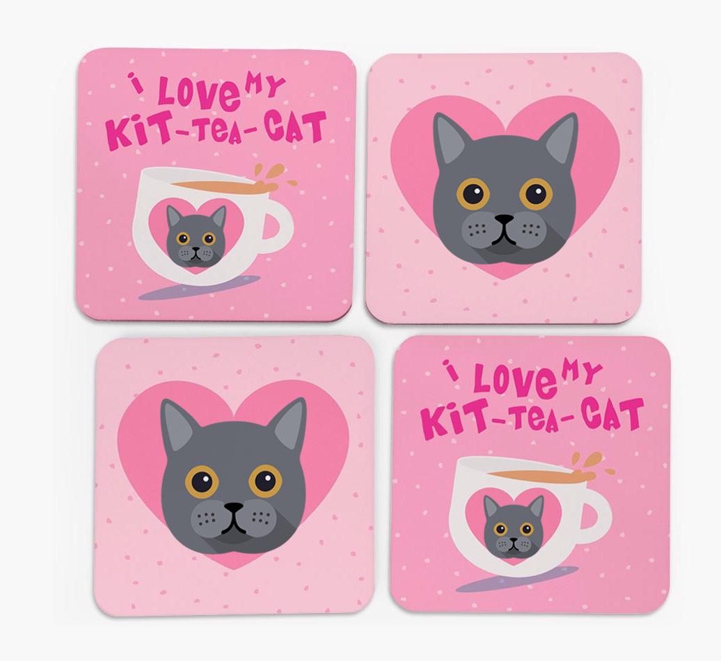 'I Love My Kit-Tea-Cat' - Personalized British Shorthair Coasters (Set of 4)