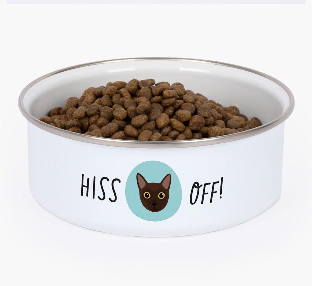 Hiss Off: Personalized Burmese Enamel Cat Bowl