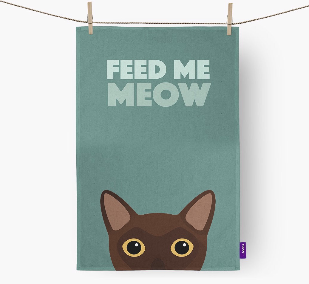 This gorgeous dish towel is sure to delight every Burmese pawrent, especially as it stars their kitty's favorite phrase, 'feed me meow'!