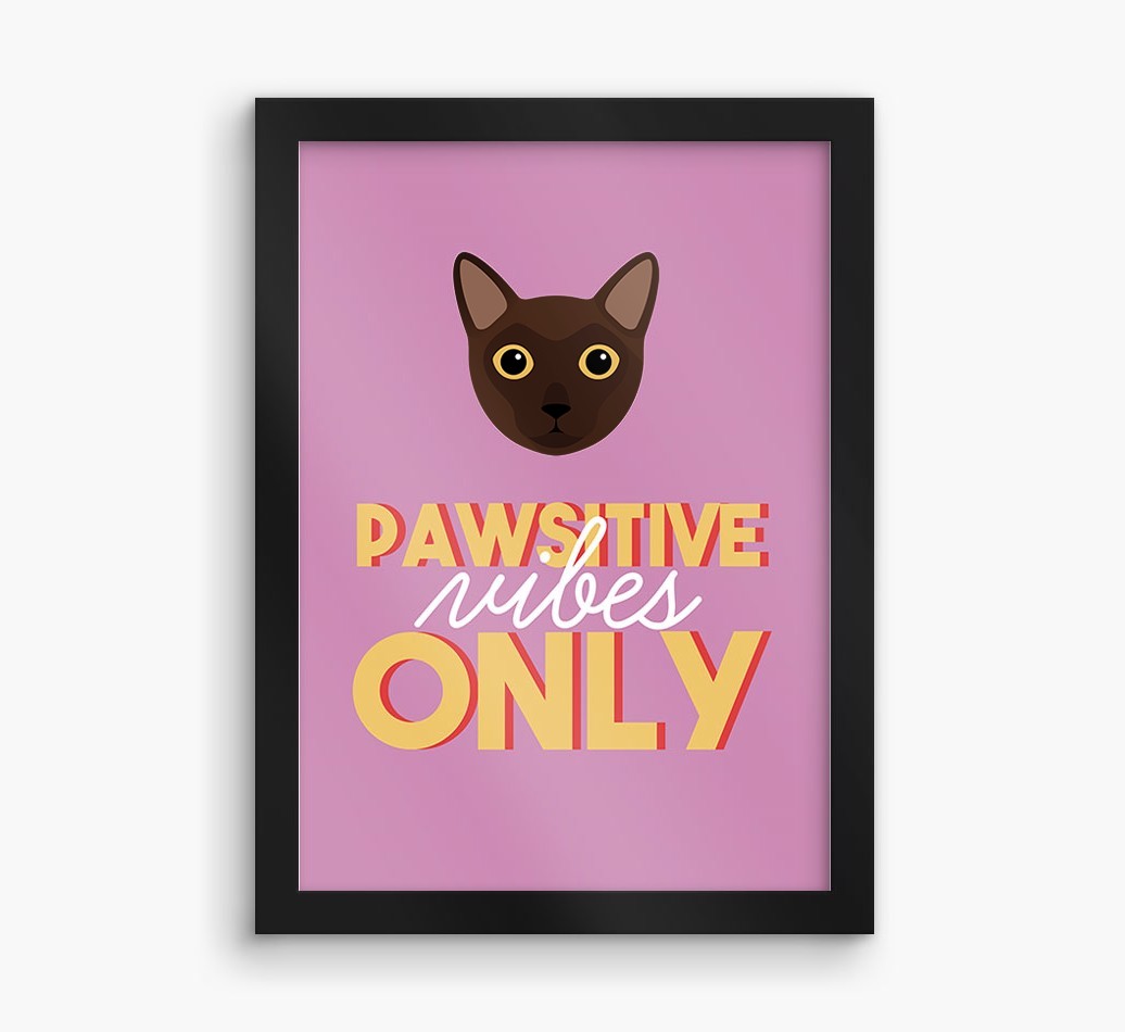 Featuring your Burmese’s yappicon and vibrant text that says 'pawsitive vibes only', this print is pawfect for adding a burst of color and plenty of good vibes into your home (with a helping paw from Burmese).