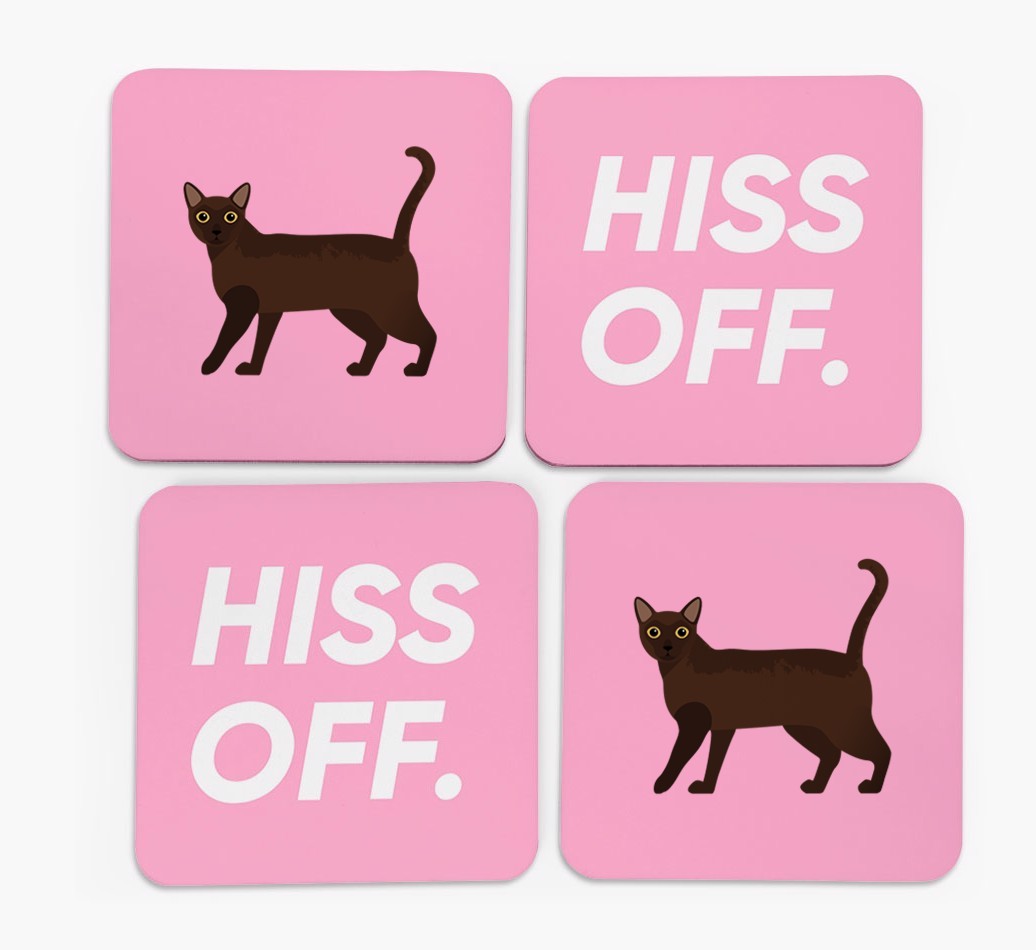 'Hiss Off' - Personalized Burmese Coasters (Set of 4)