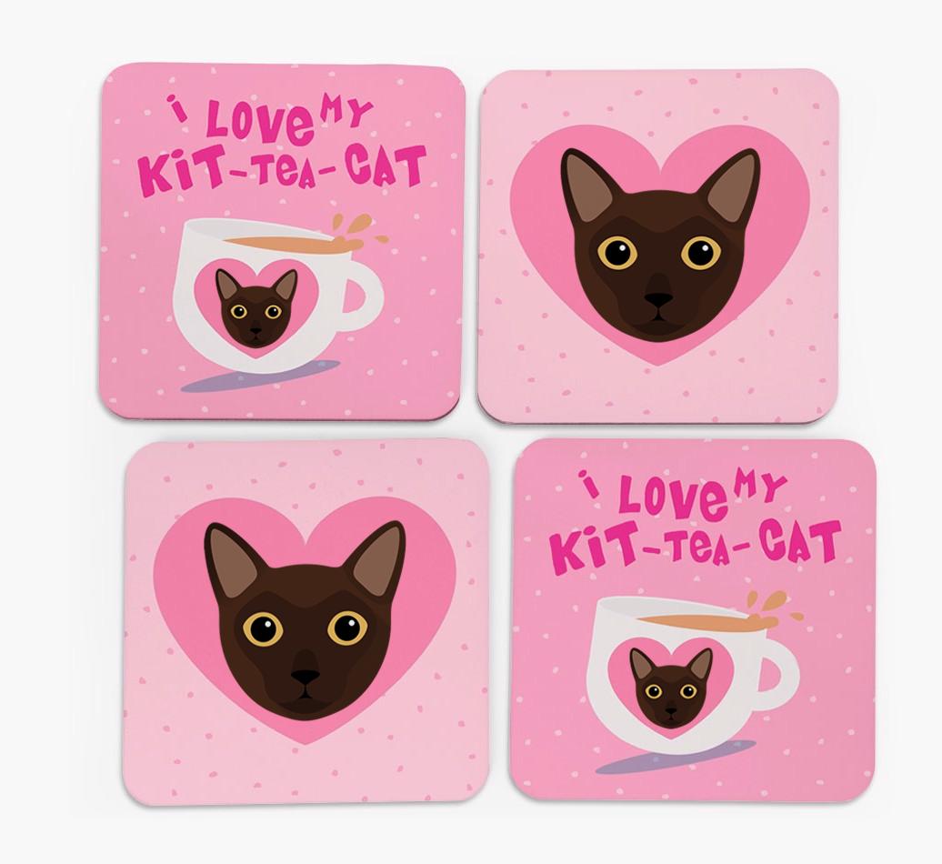 'I Love My Kit-Tea-Cat' - Personalized Burmese Coasters (Set of 4)