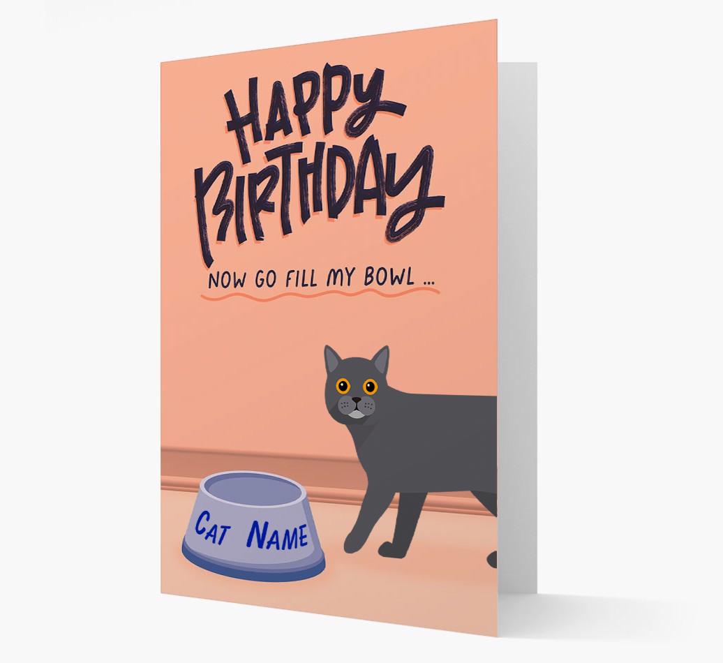Personalized with your Cat’s icon and name and available in four colors, this card is purrfect for Cat’s who love to wish you happy birthday but equally love their feline food!