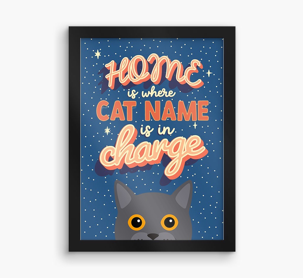 A great gift for Cat lovers, this black framed print is available in a choice of 11.7 x 16.5 inch or 16.5 x 23.4 inch sizes.